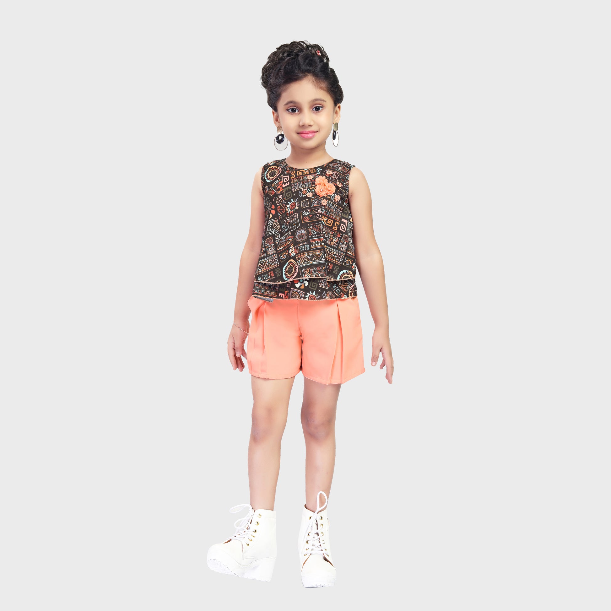 Girls Peach Shorts Set - 2649